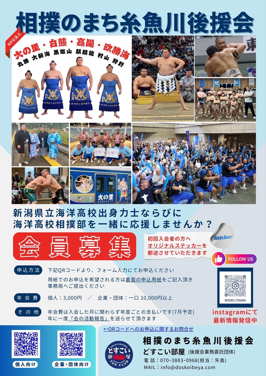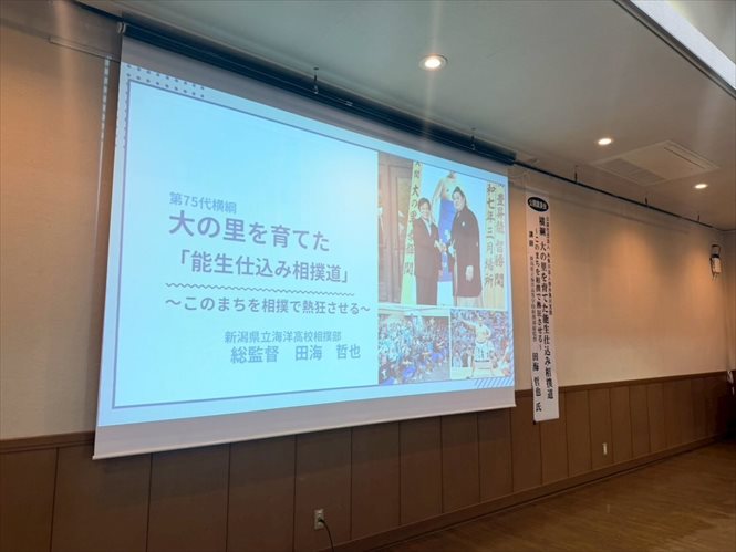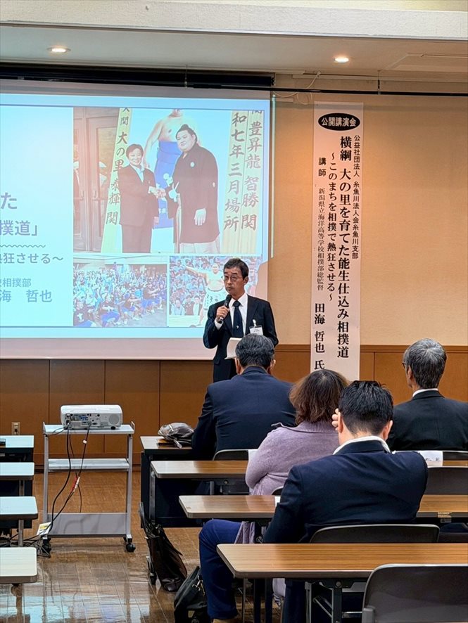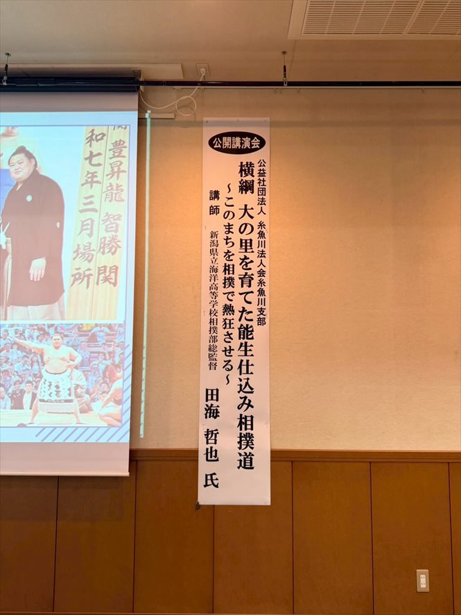 □ 海洋高校出身力士10名 星取表・・・糸魚川市役所 □ 日々稽古の小中学生 □ 田海哲也総監督講演会・・・新潟日報 社主催 新潟ブランチ同友会 □ 大相撲千秋楽・・・パブリックビューイング予定変更 □ 寺尾拓真コーチ参加・・・勝浦市 全国指導者研修会 □ 相撲のまち糸魚川後援会・・・会員募集 □ 2026年カレンダー □ 田海哲也総監督講演会・・・糸魚川法人会様主催一般公開講演会