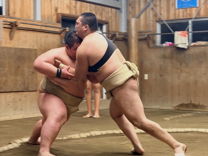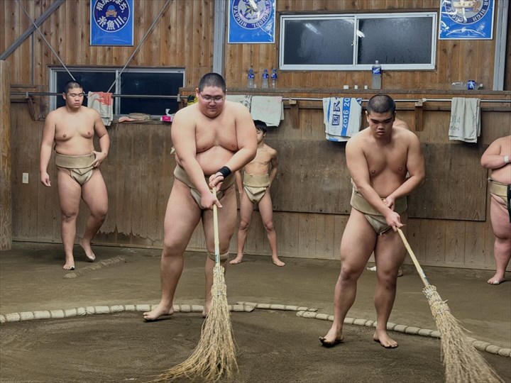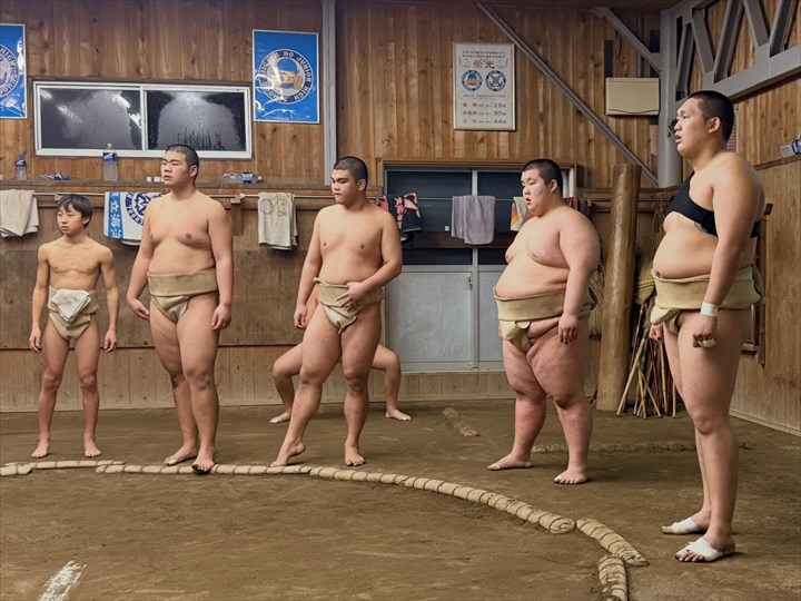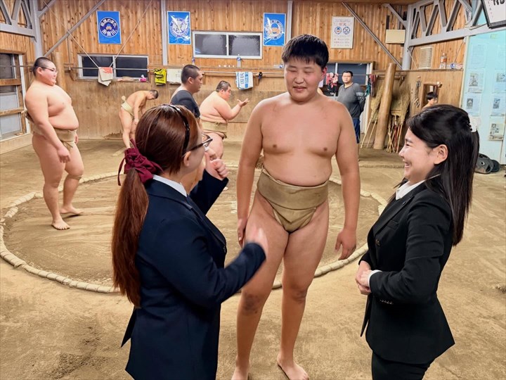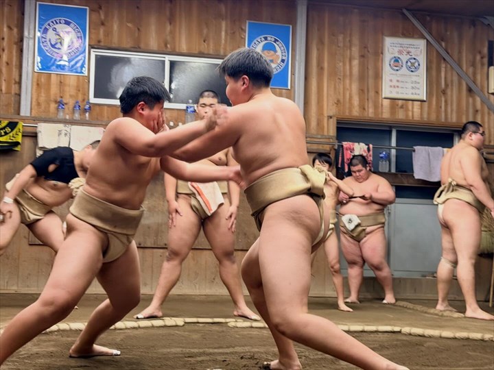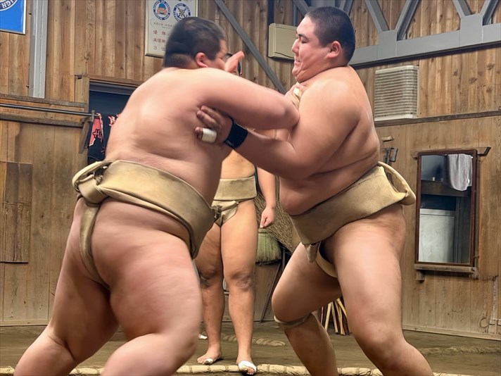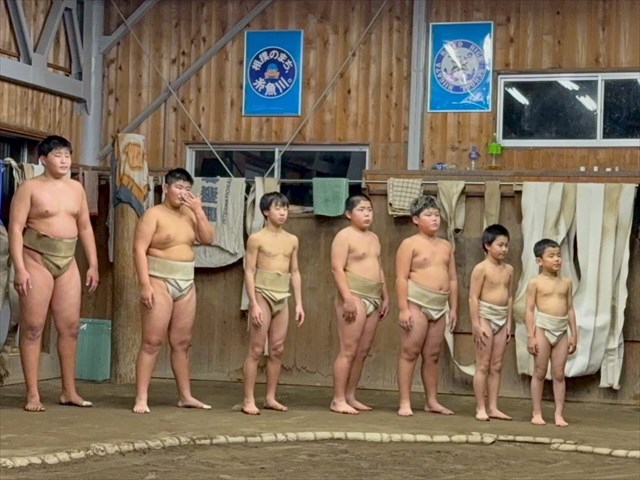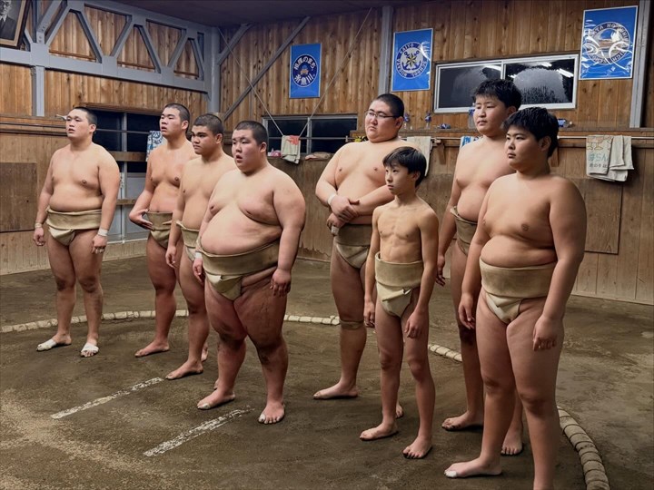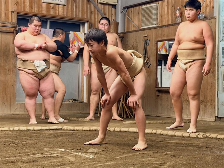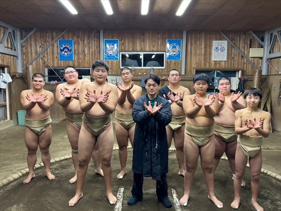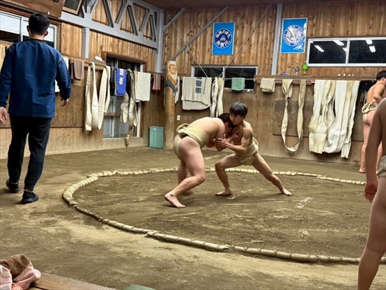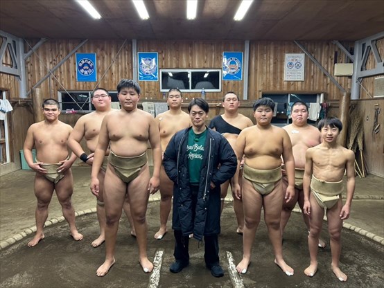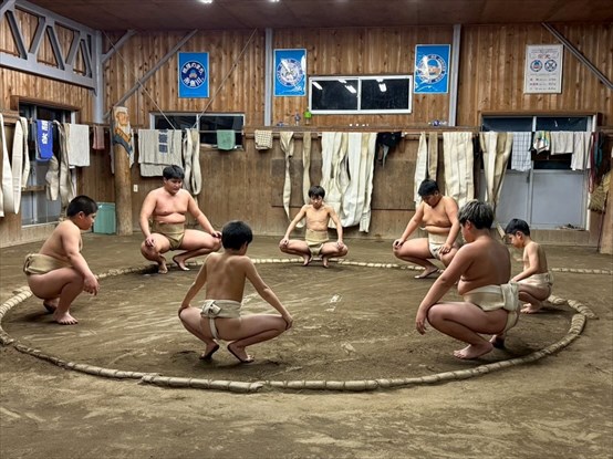 □ 能生相撲教室・・・小学生と中学生が高校生と一緒に